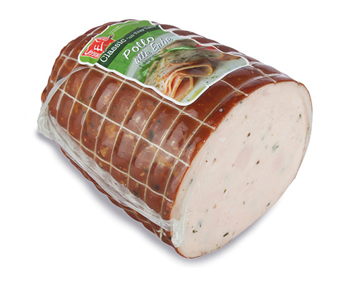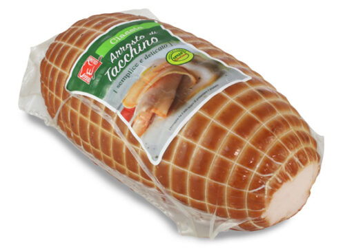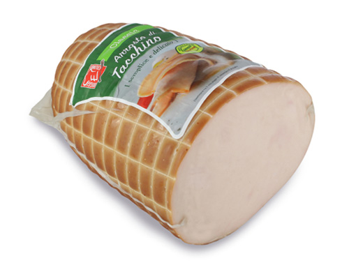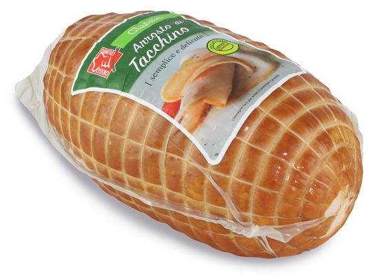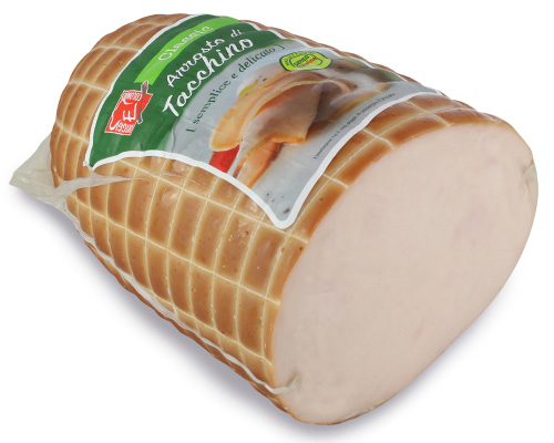 Arrosto di petti di tacchino aromatizzato, messo in rete e cotto al forno, dall’aspetto dorato e dal sapore delicato, a basso contenuto di grassi. Disponibile nella classica pezzatura da banco taglio.