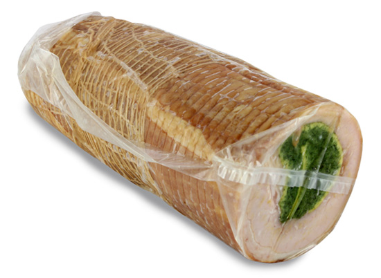 Arrosto di petti di tacchino aromatizzato, che si evidenzia per la sua pezzatura ridotta da circa 1 kg. Messo in rete e cotto al forno, dall’aspetto dorato e dal sapore delicato. A basso contenuto di grassi.