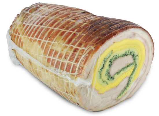 Prodotto gastronomico a base di carne di vitello, farcita con frittata di uova e spinaci. Cotta al forno, dorata all’esterno e di colore chiaro all’interno. Messa in rete e confezionata sottovuoto. Piatto ricco di ingredienti saporiti, da affettare sottilmente. Da assaporare sia fredda che intiepidita.
